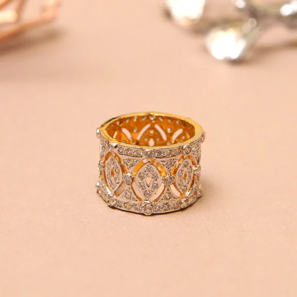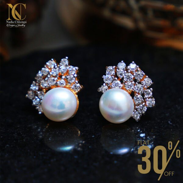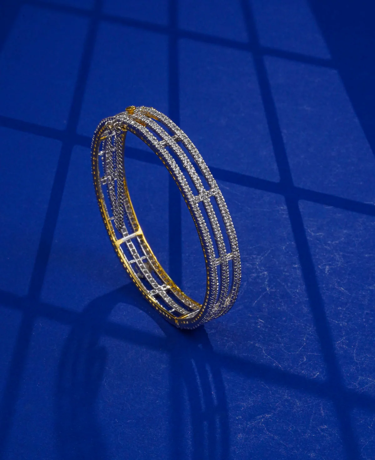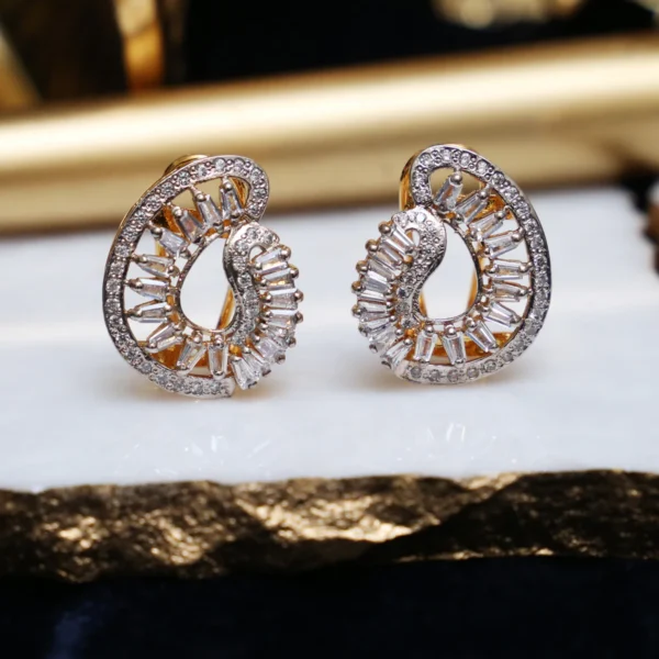 Bali ZRC Tops – Sterling Silver Modern Loop Earrings with Clear Zircons | Dual Gold & Rhodium Finish | Big Jewellery