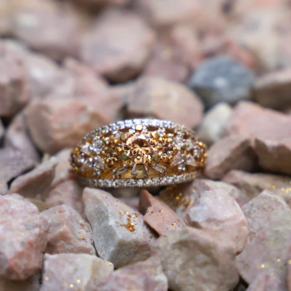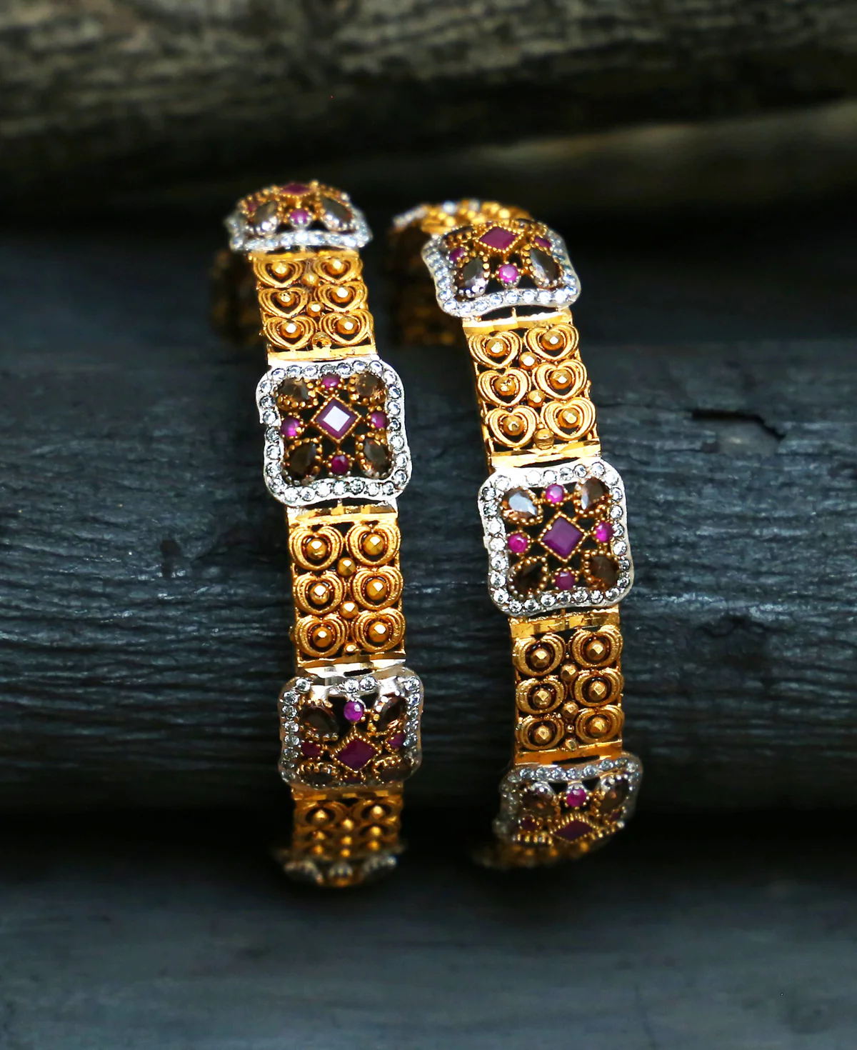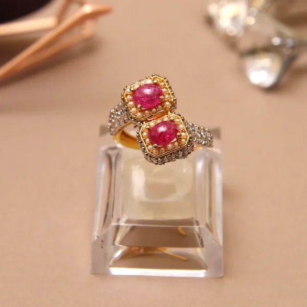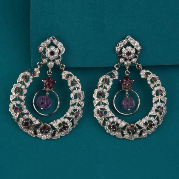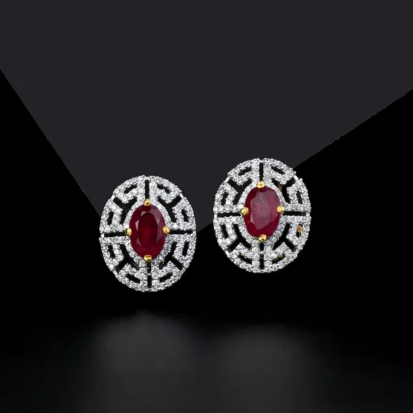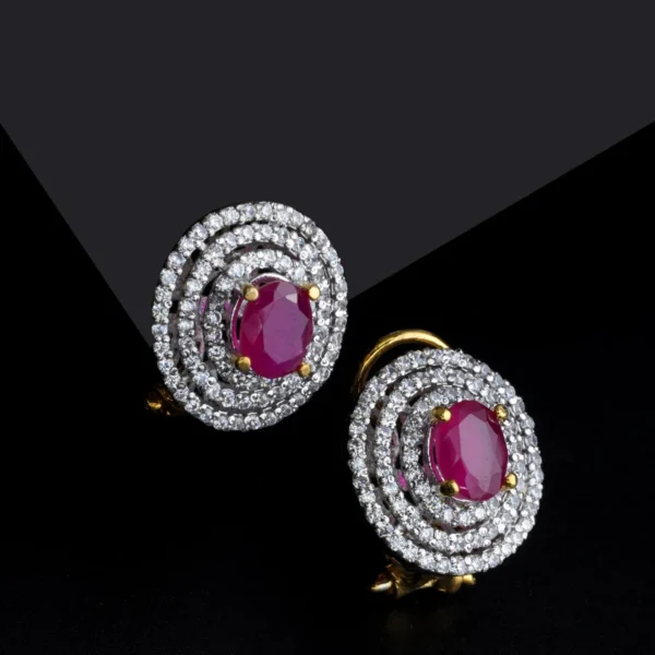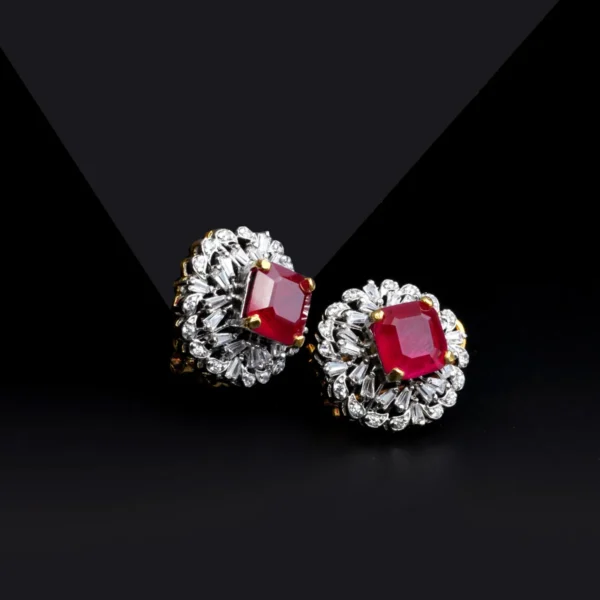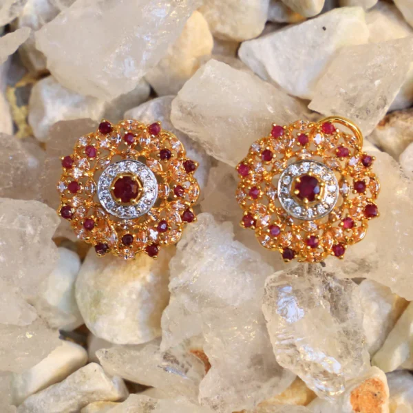 Original price was: ₨ 20,000.00.₨ 14,000.00Current price is: ₨ 14,000.00.Champagne and Ruby Sphere Tops – Sterling Silver Earrings with Real Rubies & Champagne Zircons | Gold Plated | Big Jewellery