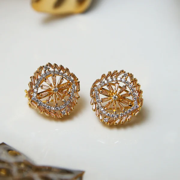 Original price was: ₨ 23,000.00.₨ 16,100.00Current price is: ₨ 16,100.00.Champagne Baguette Studs 2 – Sterling Silver Gold-Plated Earrings with Champagne & Clear Zircons | Big Jewellery