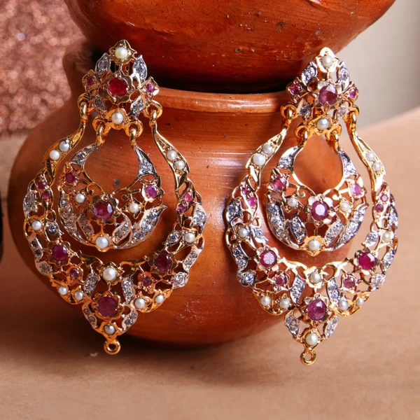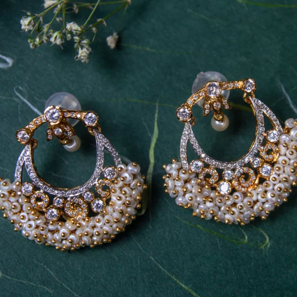 At the heart of each earring, a dangling teardrop zircon adds graceful movement and brilliance, while delicate touches of gold detailing enhance the sophistication of the design.