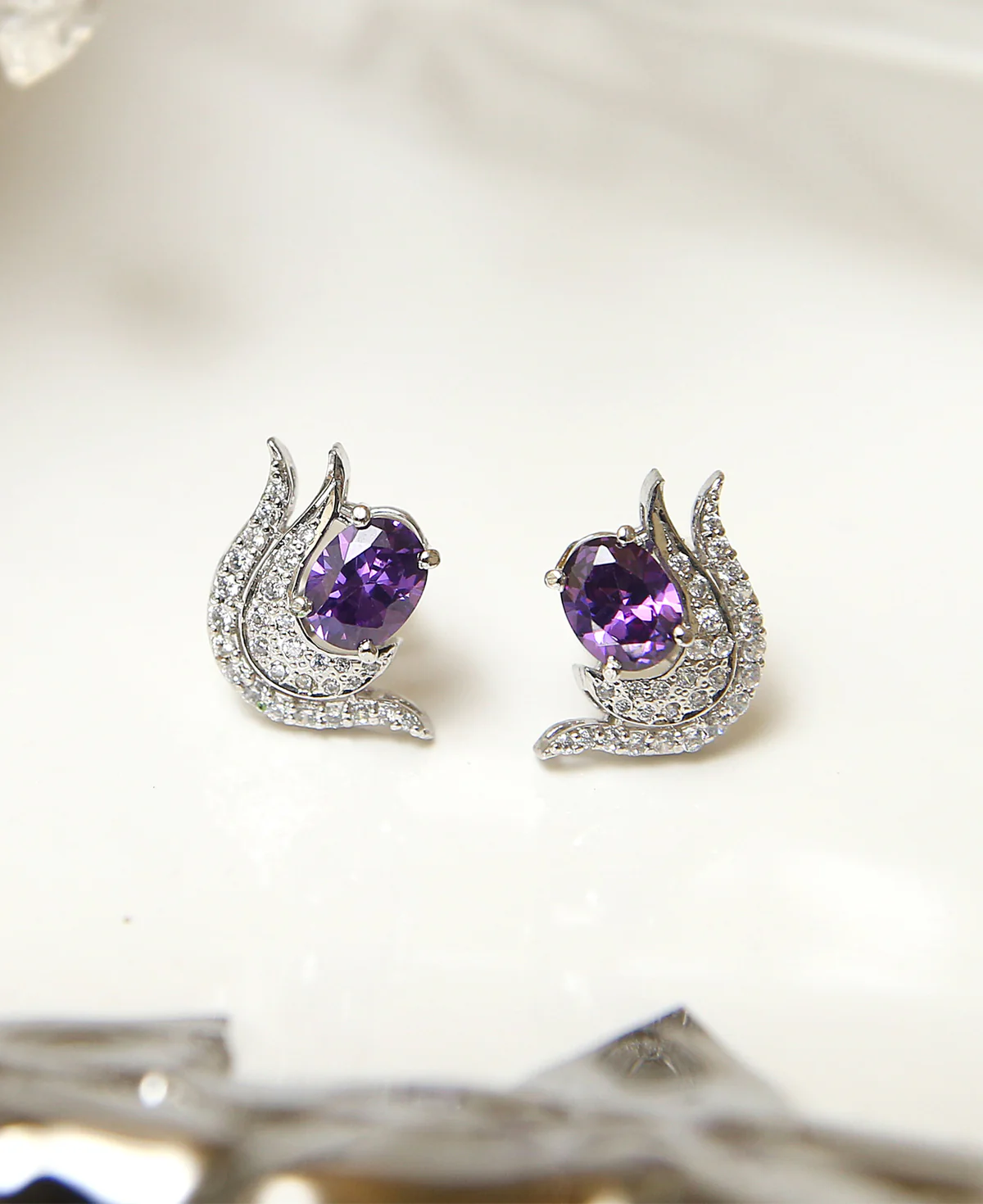 Purple Love Studs – Sterling Silver Earrings with Purple & Clear Zircons | Rhodium Finish | Big Jewellery