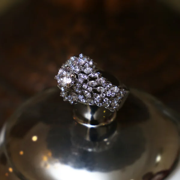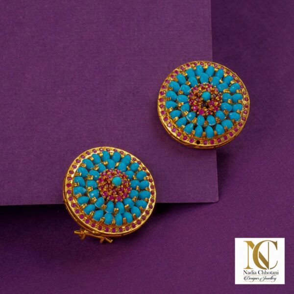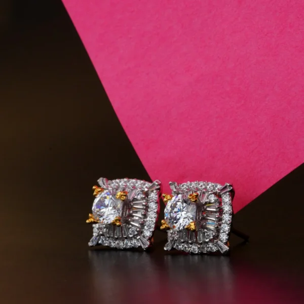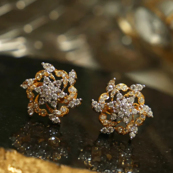 Zircon Flower Tops – Sterling Silver Earrings with Clear Zircons | Dual-Tone Gold & Rhodium Finish | Big Jewellery